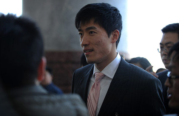 全國政協委員劉翔步入會場。3月3日,中國人民政治協商會議第十一屆全國委員會第四次會議在北京人民大會堂開幕。