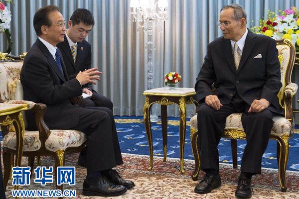 ??? 11月21日,國務(wù)院總理溫家寶在曼谷會(huì)見泰國國王普密蓬。新華社記者王曄攝