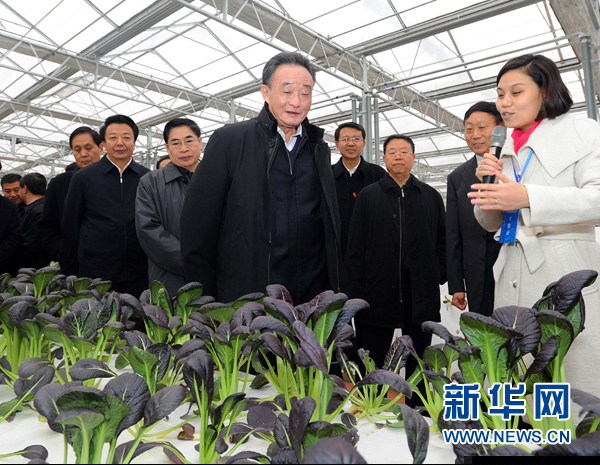 ??? 11月19日至23日,全國人大常委會委員長吳邦國在山西調(diào)研。這是11月22日,吳邦國在華通現(xiàn)代科技農(nóng)業(yè)示范園察看農(nóng)作物長勢情況。 新華社記者 李濤 攝