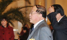 國土資源部部長徐紹史進入會場時向本網記者招手