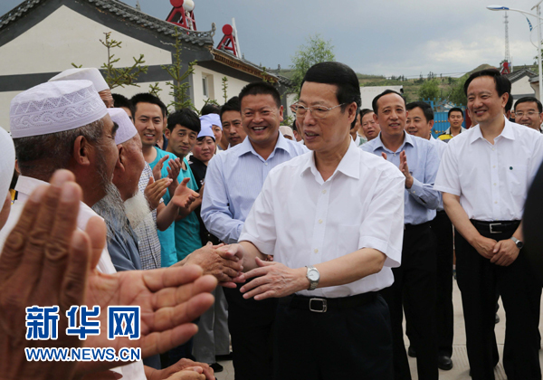 ??? 7月2日至5日,中共中央政治局常委、國(guó)務(wù)院副總理張高麗赴寧夏、甘肅調(diào)研。這是7月2日,張高麗來(lái)到寧夏固原市的一處移民新村,看望少數(shù)民族群眾,了解搬遷移民生活狀況。 新華社記者劉衛(wèi)兵攝