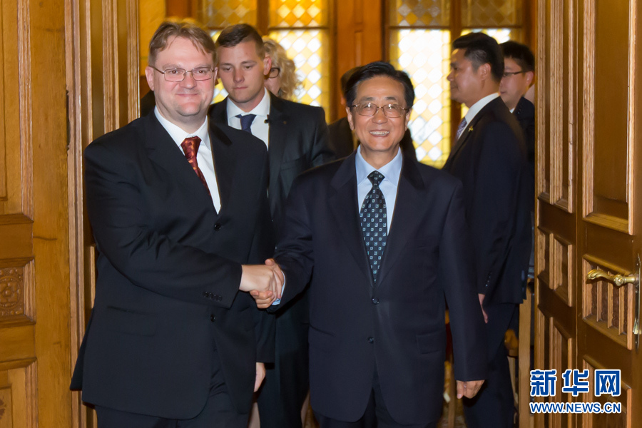 ??? 9月11日,中共中央書記處書記、中央紀(jì)委副書記趙洪祝(右)在布達(dá)佩斯會見匈牙利司法部國務(wù)秘書雷帕希。應(yīng)匈牙利執(zhí)政黨青民盟邀請,中共中央書記處書記、中央紀(jì)委副書記趙洪祝率中共代表團(tuán)于9月10日至11日訪問匈牙利。新華社發(fā)(弗爾季·奧蒂洛攝)