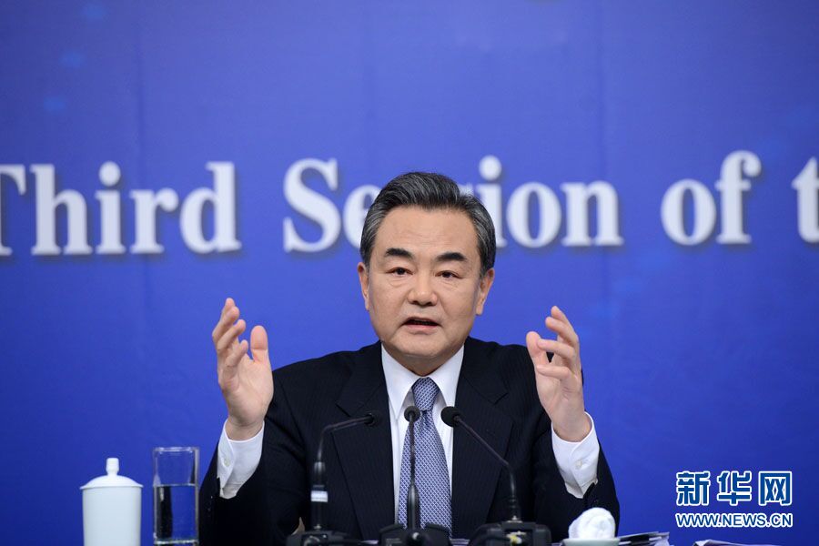 ??? 十二屆全國人大三次會(huì)議新聞中心于3月8日(星期日)10時(shí)在梅地亞中心多功能廳舉行記者會(huì),邀請(qǐng)外交部部長王毅就中國的外交政策和對(duì)外關(guān)系相關(guān)問題回答中外記者提問。圖為外交部部長王毅回答記者提問。新華網(wǎng)/中國政府網(wǎng) 郭小天 攝