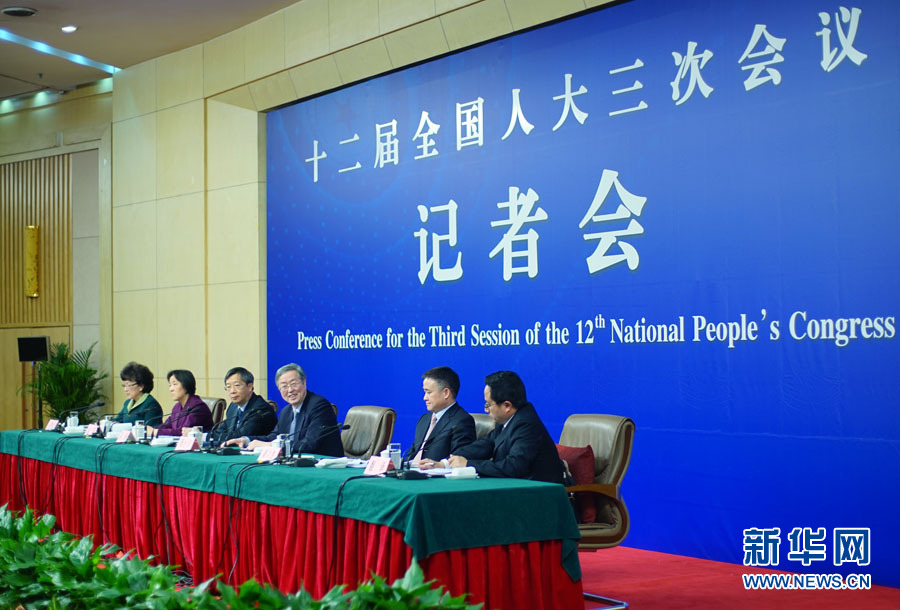????十二屆全國人大三次會議新聞中心于3月12日在梅地亞中心多功能廳舉行記者會,邀請中國人民銀行行長周小川,中國人民銀行副行長、國家外匯管理局局長易綱,中國人民銀行副行長潘功勝,絲路基金有限責任公司董事長金琦就金融改革與發展回答中外記者提問。圖為中國人民銀行行長周小川等答記者問。新華網/中國政府網 郭小天攝