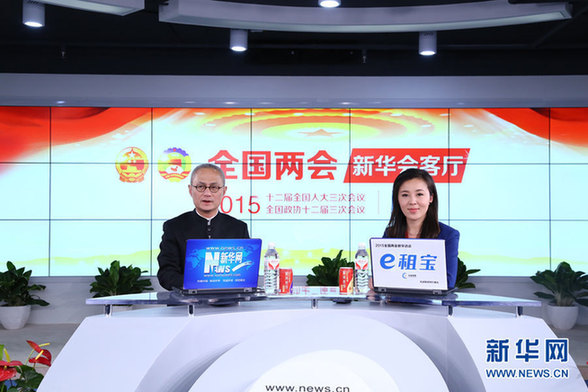 ??? 2015年3月14日,全國人大代表、鳳凰古城文化旅游投資股份有限公司董事長葉文智做客新華會客廳,圖為嘉賓與主持人合影。新華網(wǎng) 李江??攝