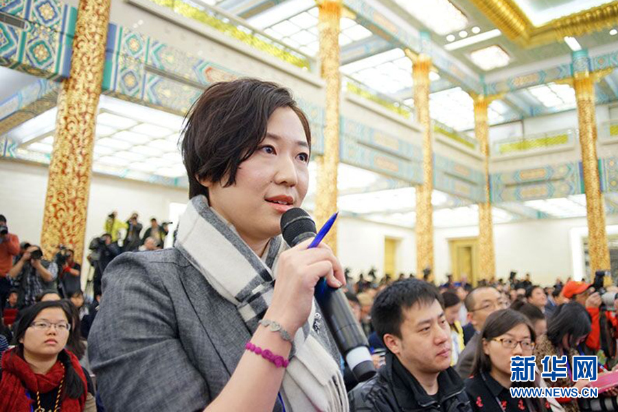 ????3月15日,國務院總理李克強在人民大會堂三樓金色大廳會見采訪十二屆全國人大三次會議的中外記者并回答記者提出的問題。圖為香港經濟日報記者提問。新華網/中國政府網?郭小天 攝