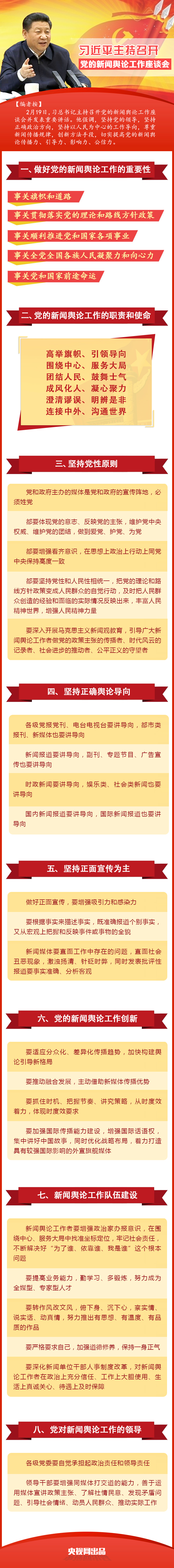 習近平強調,做好黨的新聞輿論工作,事關旗幟和道路,事關貫徹落實黨的理論和路線方針政策,事關順利推進黨和國家各項事業,事關全黨全國各族人民凝聚力和向心力,事關黨和國家前途命運。