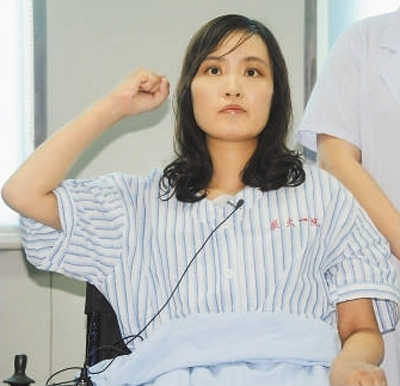 2012年7月1日,張麗莉在家人陪伴下,坐在輪椅上,舉起右拳,面對黨旗,莊嚴(yán)宣誓入黨。