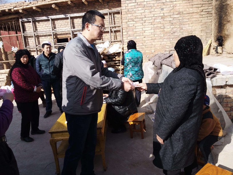 包毅為貧困戶發放慰問金