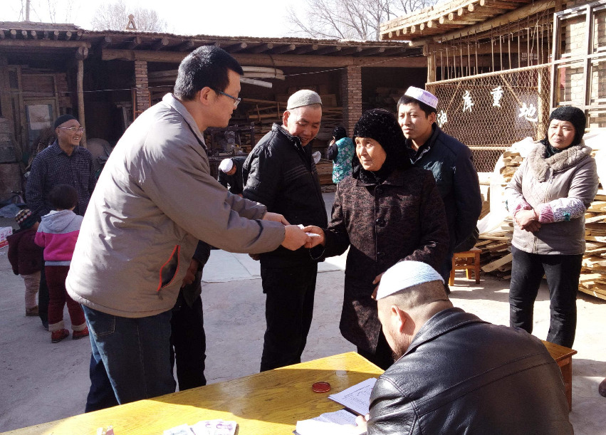 包毅為貧困戶發放慰問金,宣傳精準扶貧政策