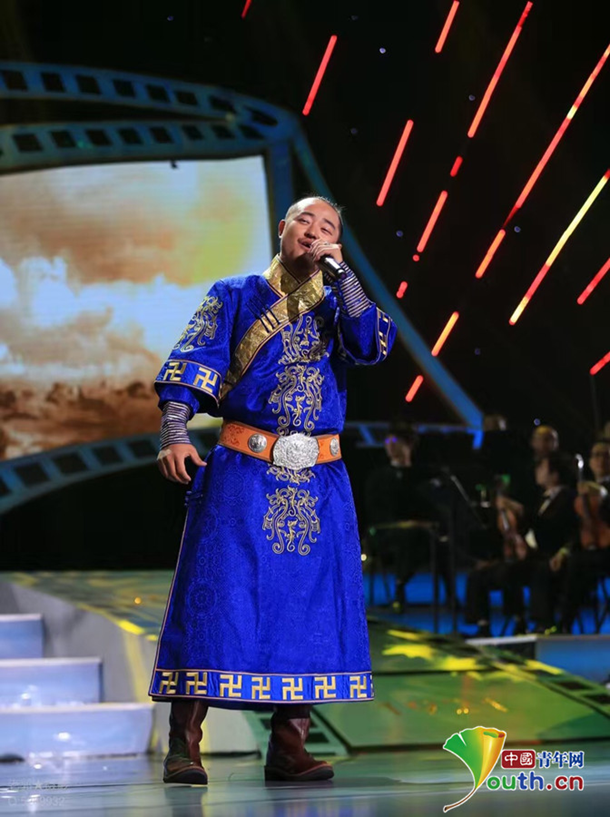 呼和牧人在《紀念中國共產黨成立95周年電影音樂會》演唱民歌。本人供圖