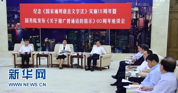 劉延?xùn)|在紀(jì)念《國(guó)家通用語(yǔ)言文字法》實(shí)施15周年暨國(guó)務(wù)院發(fā)布《關(guān)于推廣普通話的指示》60周年座談會(huì)上強(qiáng)調(diào)