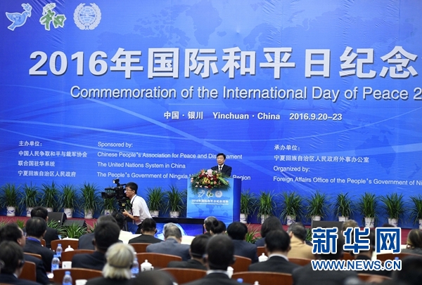 9月21日,2016年國際和平日紀念活動在銀川開幕,國家副主席李源潮出席并致辭。 新華社記者 王鵬 攝