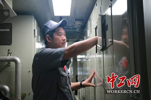張如意在調(diào)試“和諧號”空氣壓縮機。中工網(wǎng)記者 葛文琦攝