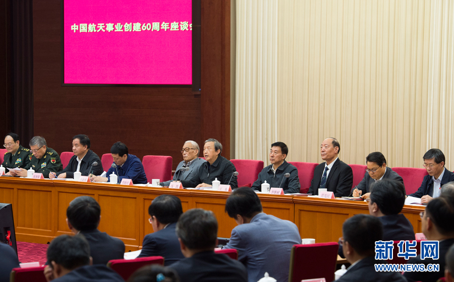 ????10月12日,中國航天事業(yè)創(chuàng)建60周年座談會(huì)在北京召開。中共中央政治局委員、國務(wù)院副總理馬凱出席座談會(huì)并講話,國務(wù)委員王勇出席座談會(huì)。新華社記者謝環(huán)馳攝