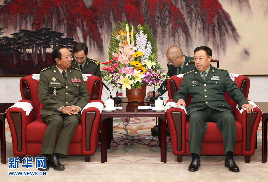 ??? 10月13日,中央軍委副主席范長龍在北京會見柬埔寨王國副首相兼國防大臣迪班。 新華社記者 馬占成 攝