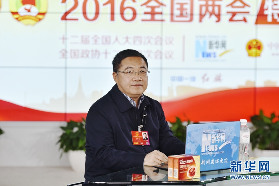 2016年3月12日,全國人大代表、正邦集團董事局主席、總裁林印孫做客新華網兩會訪談直播間。圖為林印孫在訪談現場。新華網 郭小天 攝
