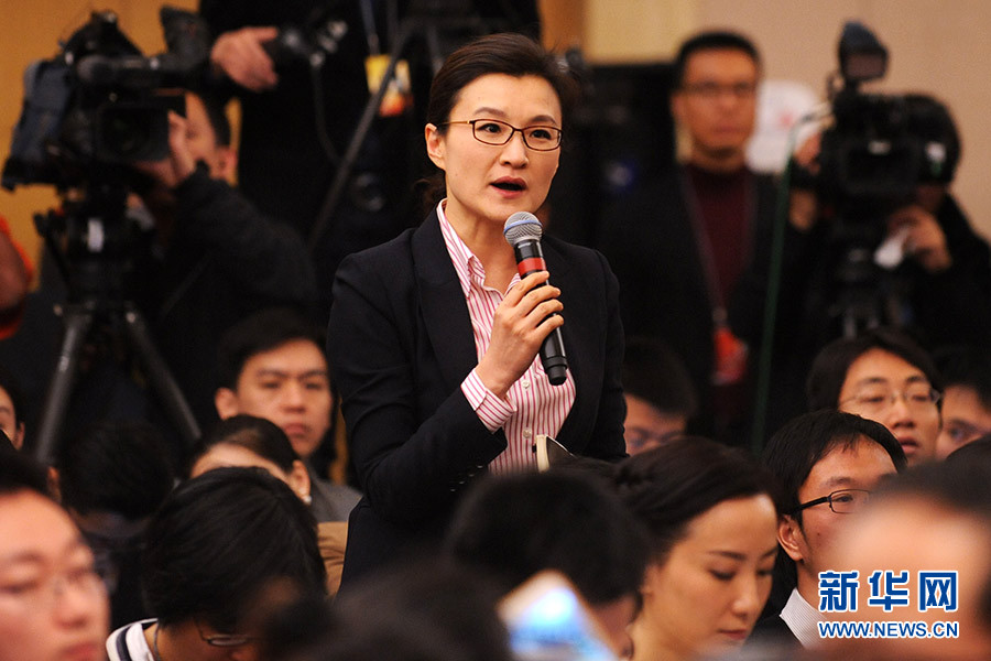 3月12日,十二屆全國人大四次會議在梅地亞中心多功能廳舉行記者會,邀請中國銀行業監督管理委員會主席尚福林、中國證券監督管理委員會主席劉士余、中國保險監督管理委員會主席項俊波回答中外記者的提問。圖為中央電視臺記者提問。新華網/中國政府網 陳杰 攝