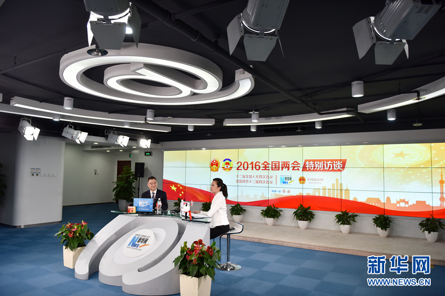 3月12日,全國人大代表,運城市市長王清憲做客新華網2016全國兩會特別訪談,與新華網網友在線交流。圖為王清憲在新華網直播間。新華網 付宇鵬 攝