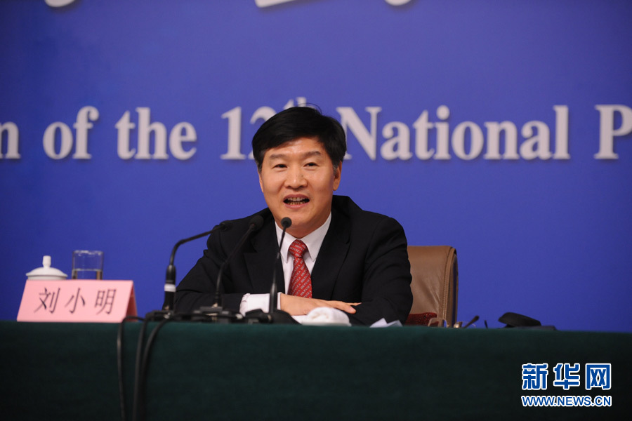 十二屆全國人大四次會議新聞中心于3月14日(星期一)10時在梅地亞中心多功能廳舉行記者會,邀請交通運輸部部長楊傳堂、交通運輸部運輸服務(wù)司司長劉小明、北京交通發(fā)展研究中心主任郭繼孚就“深化出租汽車改革與發(fā)展”的相關(guān)問題回答中外記者的提問。圖為交通運輸部運輸服務(wù)司司長劉小明答記者問。新華網(wǎng)/中國政府網(wǎng) 陳杰 攝