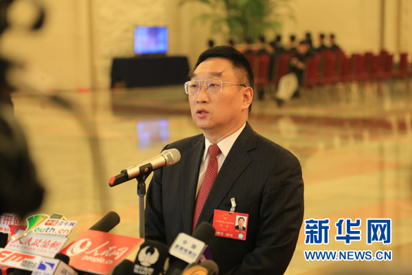 3月16日上午,第十二屆全國人民代表大會第四次會議在人民大會堂舉行閉幕會,表決關于政府工作報告、關于國民經濟和社會發展第十三個五年規劃綱要、關于2015年國民經濟和社會發展計劃執行情況與2016年國民經濟和社會發展計劃等7個決議草案。圖為水利部部長陳雷在“部長通道”接受采訪。新華網/中國政府網 李何銘 攝