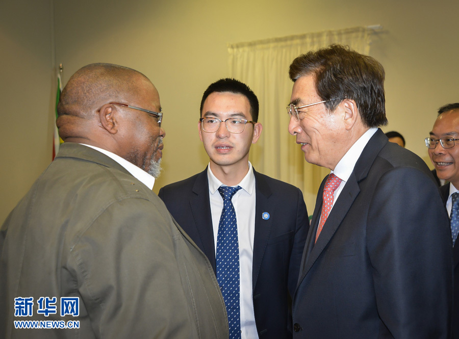 ??? 3月26日,中共中央政治局委員、北京市委書記郭金龍(前右)在南非約翰內斯堡與執(zhí)政的南非非洲人國民大會總書記曼塔謝(前左)舉行工作會談。新華社記者趙熙攝