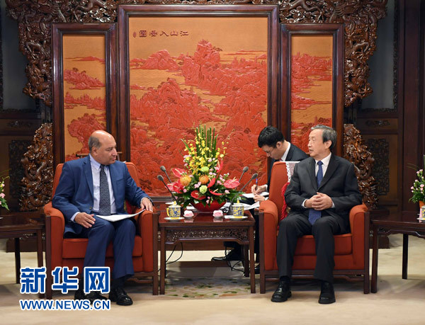 7月25日,國務院副總理馬凱在北京中南海紫光閣會見歐洲復興開發銀行行長查克拉巴蒂。新華社記者 張鐸 攝