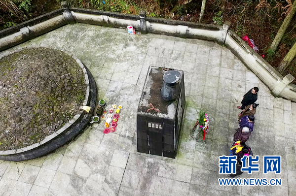 在江西蓮花縣玉壺山,龔全珍攜子女為甘祖昌將軍掃墓(4月1日攝)。新華社發