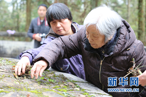 在江西蓮花縣玉壺山,龔全珍老人為甘祖昌將軍掃墓(4月1日攝)。新華社發