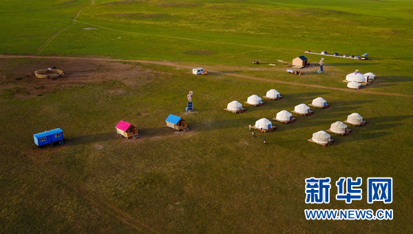 內蒙古自治區新巴爾虎右旗克爾倫蘇木芒來嘎查黨支部書記米吉格家開辦的牧家樂(7月17日攝)。新華社記者 連振 攝