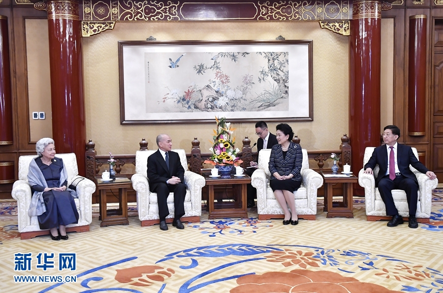 8月23日,國務院副總理劉延東在北京會見來華例行查體休養的柬埔寨國王西哈莫尼和太后莫尼列。 新華社記者 燕雁 攝