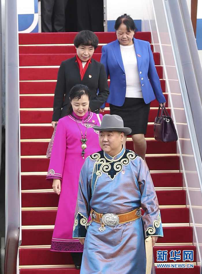 新華社快訊:來自內蒙古自治區的黨的十九大代表,15日上午9時許乘飛機抵達首都國際機場。這是第一個抵京的京外代表團。