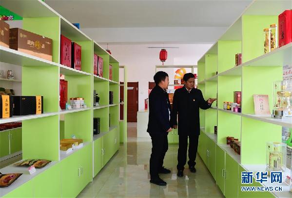 李華靚(右)向一名客商介紹馬場村農(nóng)民專業(yè)合作社產(chǎn)品(10月31日攝)。新華社記者林宏攝