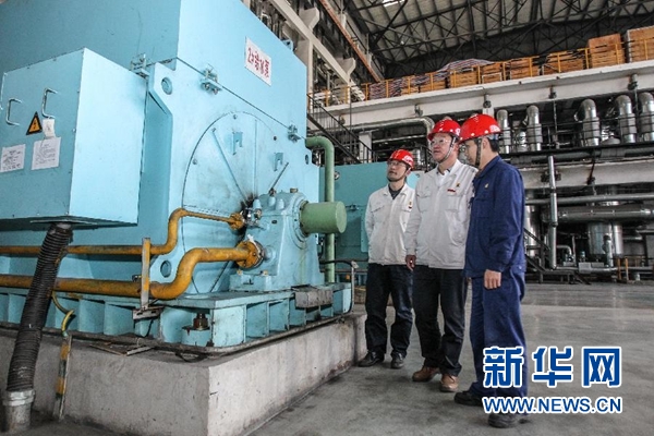 10月31日,王樹春(中)在湖南華菱湘潭鋼鐵有限公司135MW超高壓發電項目廠房中了解設備運行狀況。十九大代表、湖南華菱湘潭鋼鐵有限公司黨委書記王樹春從北京回到鋼廠,下車后直奔會議室,激動地向等待在此的班子成員傳達十九大精神。對這個流著紅色血液、有著9693名黨員、剛剛擺脫生存困境的老鋼廠來說,十九大精神無疑帶來了新希望、吹響了新號角。新華社記者 王天聰 攝