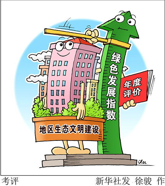 綠色發展指數和公眾滿意程度的年度評價,都將納入到五年一次的生態文明建設目標考核中,作為黨政領導綜合考核評價、干部獎懲任免的重要依據。