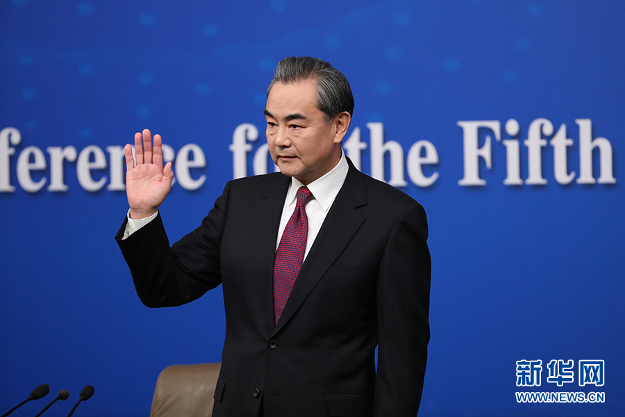 十二屆全國人大五次會議新聞中心于3月8日(星期三)10時在梅地亞中心多功能廳舉行記者會,邀請外交部部長王毅就“中國的外交政策和對外關系”的相關問題回答中外記者的提問。圖為外交部部長王毅在記者會現場。新華網/中國政府網?翟子赫 攝