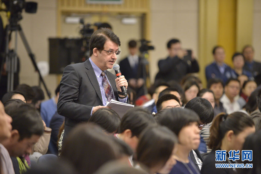 3月10日,十二屆全國人大五次會議新聞中心舉行記者會,邀請中國人民銀行行長周小川、副行長易綱、副行長兼國家外匯管理局局長潘功勝、副行長范一飛就“金融改革與發(fā)展”的相關問題回答中外記者的提問。圖為彭博新聞社記者提問。新華網/中國政府網 王健 攝