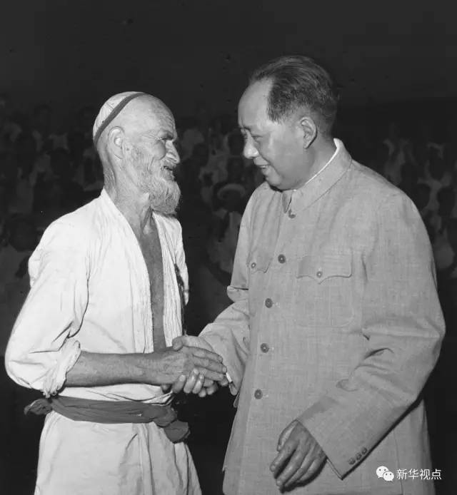 這張老照片,記錄了1958年6月28日毛澤東主席與庫爾班·吐魯木親切握手的場(chǎng)景。