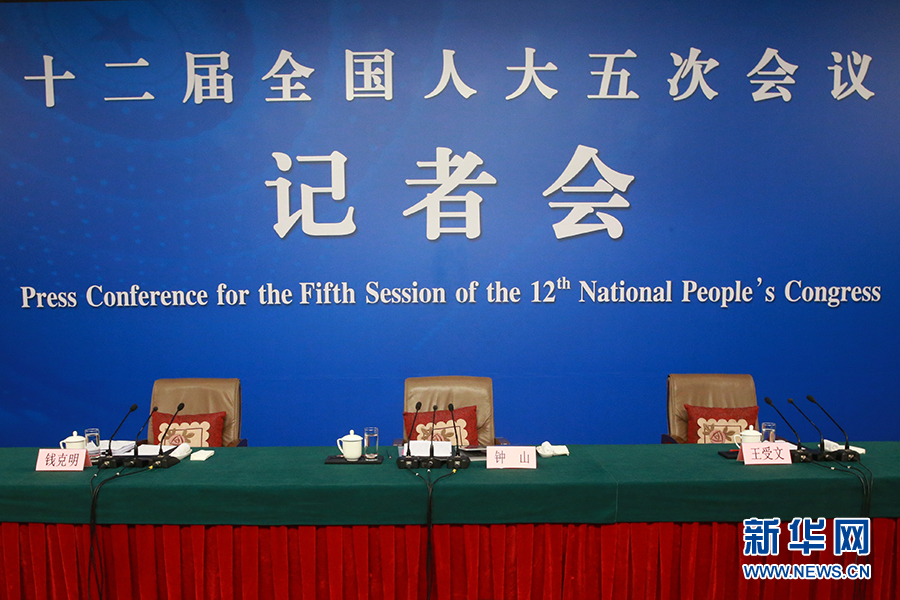 3月11日,十二屆全國人大五次會議新聞中心舉行記者會,主題是“改革開放調(diào)結(jié)構(gòu) 創(chuàng)新驅(qū)動促發(fā)展”,商務部部長鐘山、副部長王受文、副部長錢克明出席并回答中外記者的提問。圖為記者會現(xiàn)場。 新華網(wǎng)/中國政府網(wǎng) 傅義洲 攝