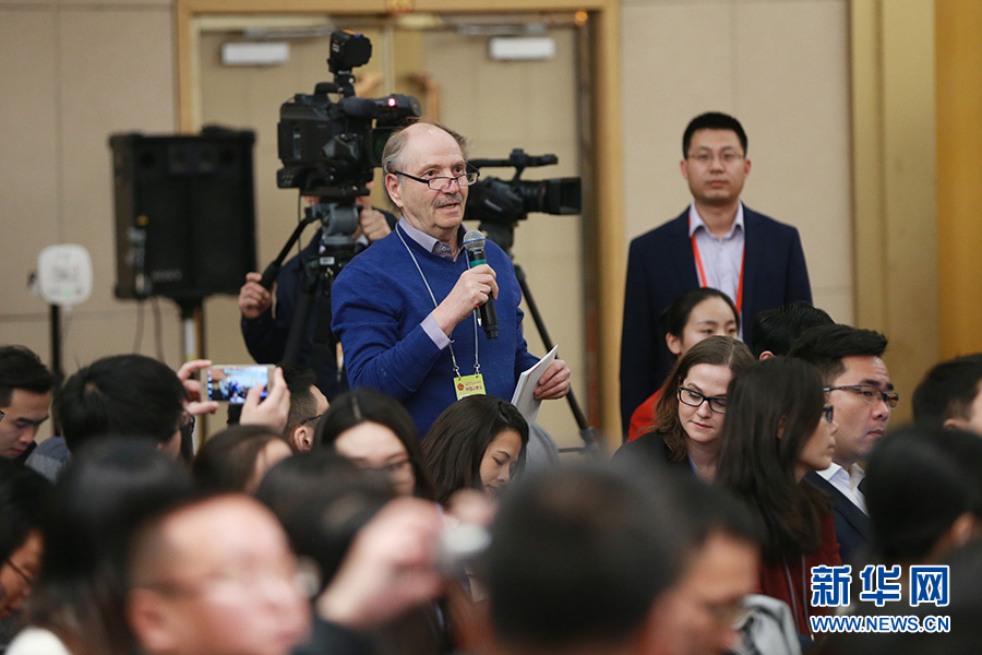 3月11日,十二屆全國人大五次會(huì)議新聞中心舉行記者會(huì),邀請工業(yè)和信息化部部長苗圩、副部長辛國斌和總工程師、新聞發(fā)言人張峰就“推進(jìn)實(shí)施‘中國制造2025’”的相關(guān)問題回答中外記者的提問。圖為德國世界報(bào)記者提問。新華網(wǎng)/中國政府網(wǎng) 傅義洲 攝