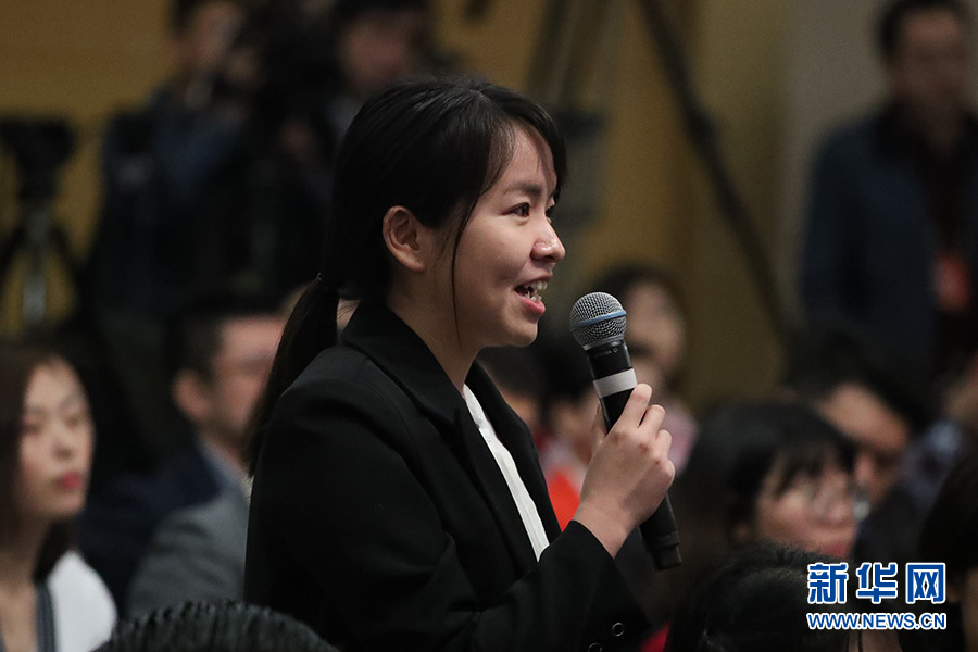 3月11日,十二屆全國人大五次會議新聞中心舉行記者會,邀請工業和信息化部部長苗圩、副部長辛國斌和總工程師、新聞發言人張峰就“推進實施‘中國制造2025’”的相關問題回答中外記者的提問。圖為中國日報記者提問。新華網/中國政府網 傅義洲 攝