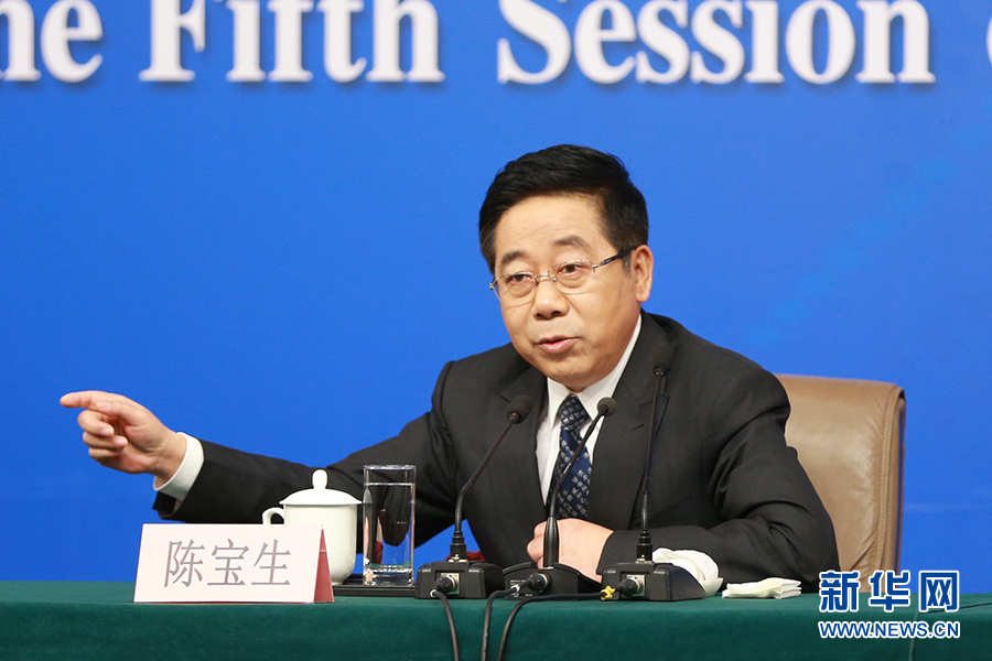 3月12日,十二屆全國人大五次會議新聞中心舉行記者會,邀請教育部部長陳寶生就“教育改革發展”的相關問題回答中外記者的提問。圖為教育部部長陳寶生回答記者提問。新華網/中國政府網 傅義洲 攝