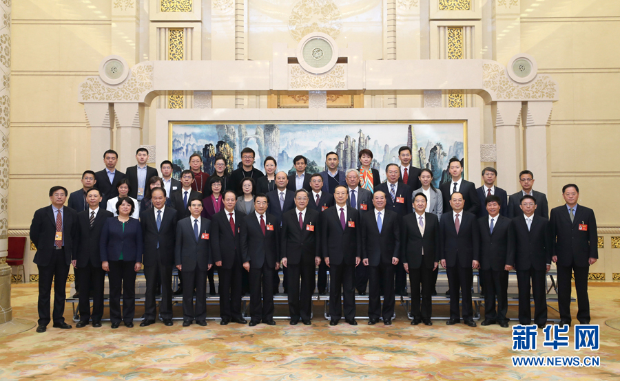 ?? 3月13日,中共中央政治局常委、全國政協主席俞正聲在北京人民大會堂看望參加全國政協十二屆五次會議新聞報道工作的中央主要新聞媒體負責同志和記者代表,向參加大會報道的新聞工作者表示誠摯慰問和衷心感謝。新華社記者 鞠鵬 攝