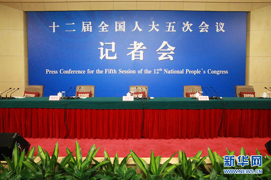 3月14日,十二屆全國人大五次會議新聞中心舉行記者會,邀請國家質檢總局局長支樹平、副局長兼國家認證認可監(jiān)督管理委員會主任孫大偉、國家標準化管理委員會主任田世宏就“質量提升”的相關問題回答中外記者的提問。圖為記者會現場。新華網/中國政府網?傅義洲 攝