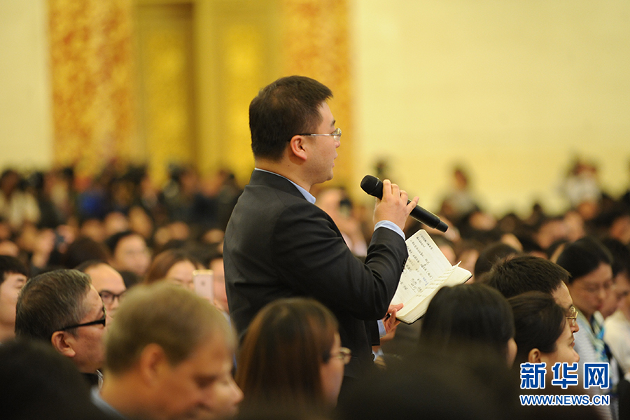 3月15日上午,國務院總理李克強在人民大會堂三樓金色大廳會見采訪十二屆全國人大五次會議的中外記者并回答記者提出的問題。圖為中央人民廣播電臺記者提問。新華網/中國政府網 翟子赫 攝?