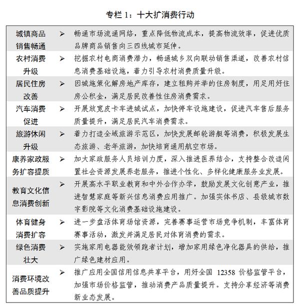 專(zhuān)欄1:十大擴(kuò)消費(fèi)行動(dòng) 新華社發(fā)