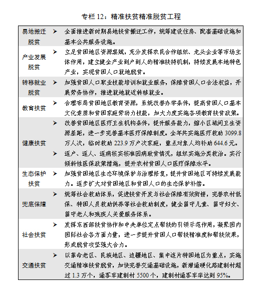 五是補(bǔ)短板力度加大。堅(jiān)持既利當(dāng)前又利長(zhǎng)遠(yuǎn),既重硬設(shè)施又重軟能力,以市場(chǎng)化投融資方式帶動(dòng)銀行貸款等資金投放,在脫貧攻堅(jiān)、災(zāi)后水利恢復(fù)重建、社會(huì)事業(yè)、創(chuàng)新能力、新產(chǎn)業(yè)等關(guān)鍵領(lǐng)域和薄弱環(huán)節(jié),抓好補(bǔ)短板建設(shè)。全年完成1000萬(wàn)以上農(nóng)村貧困人口脫貧目標(biāo)任務(wù)。