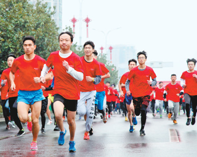 湖南衡陽(yáng)市民參加元旦環(huán)城賽跑。劉愛(ài)成攝(新華社發(fā))