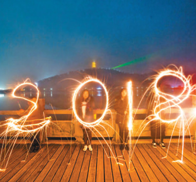 江西都昌縣游客用煙花棒畫(huà)出“2018”字樣。傅建斌攝(人民視覺(jué))