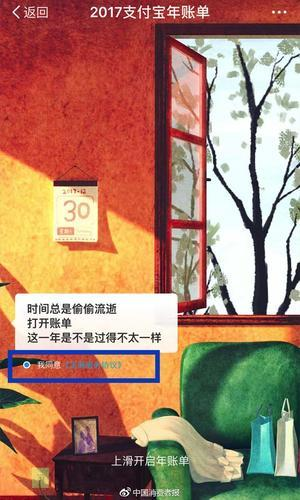但到了昨天下午,法律界人士對賬單首頁的一行小字提出質疑,認為支付寶在用戶不知情狀態下獲取信息,涉嫌違反相關法律。